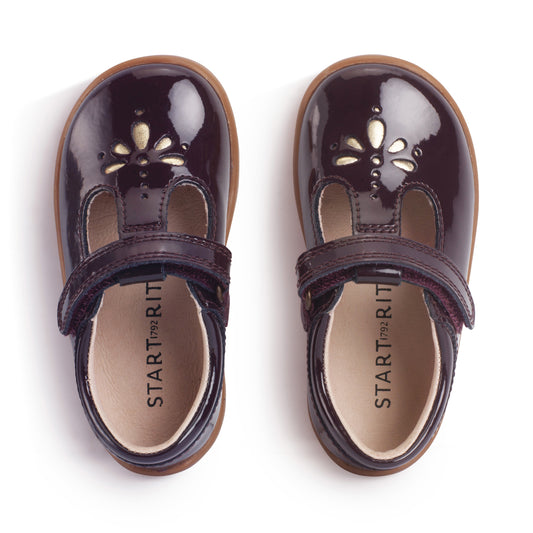 Start-Rite | Puzzle | Girls First T-Bar Shoe | Burgundy Patent | G Width