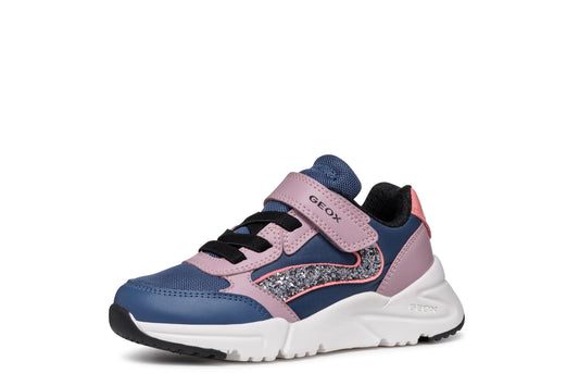 Geox | Loftus Girl | J46M2A | Girls Velcro Trainer | Avio/Dark Rose
