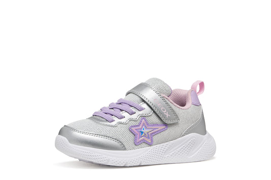 Geox | J55FWA | Sprintye | Girls Velcro Trainer | Silver/Lilac