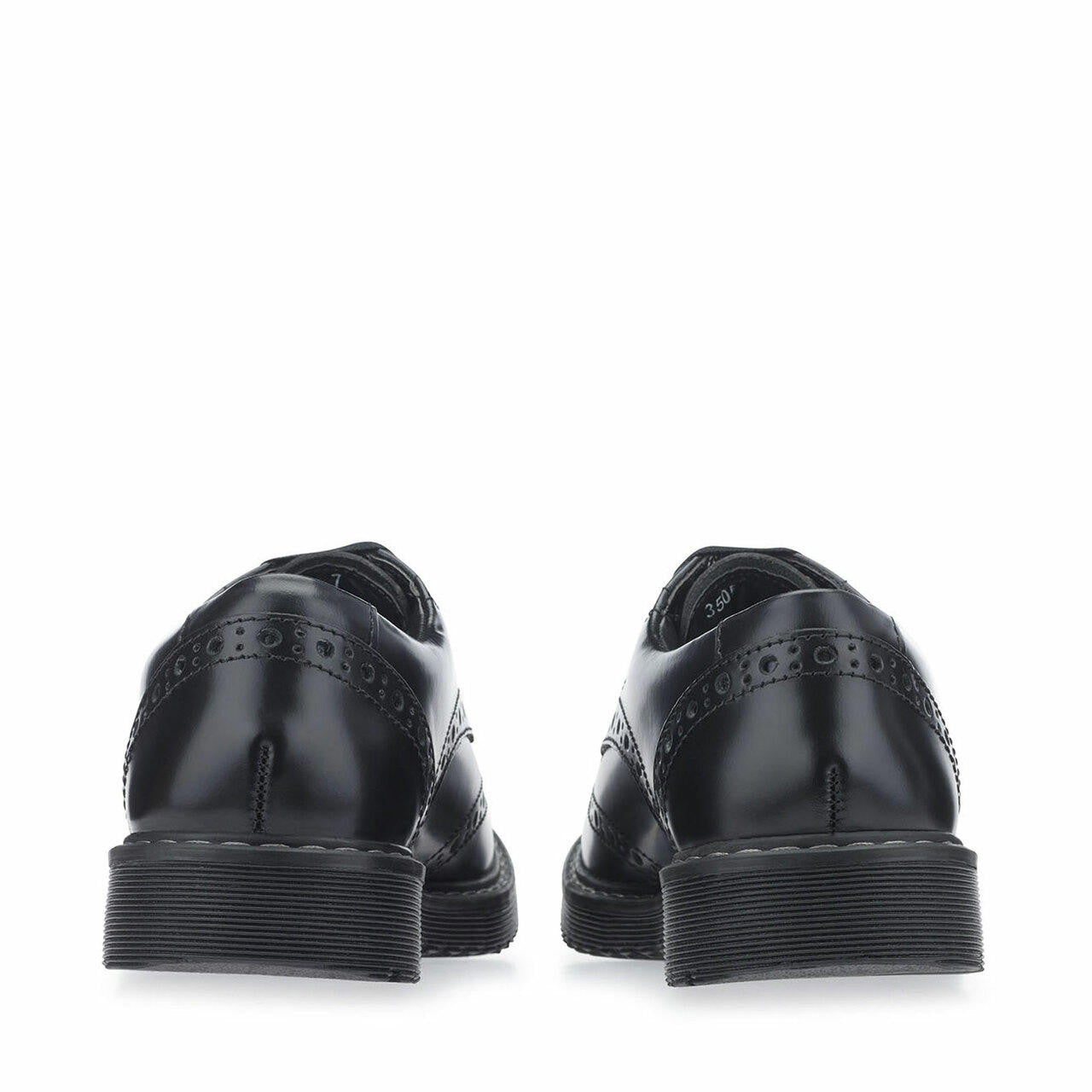 Start-Rite Impulsive, a chunky brogue school shoe in black high shine leather with lace up fastening. With cushioned insoles for added comfort and a padded collar for extra comfort and ankle support.