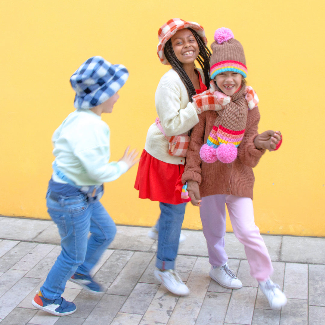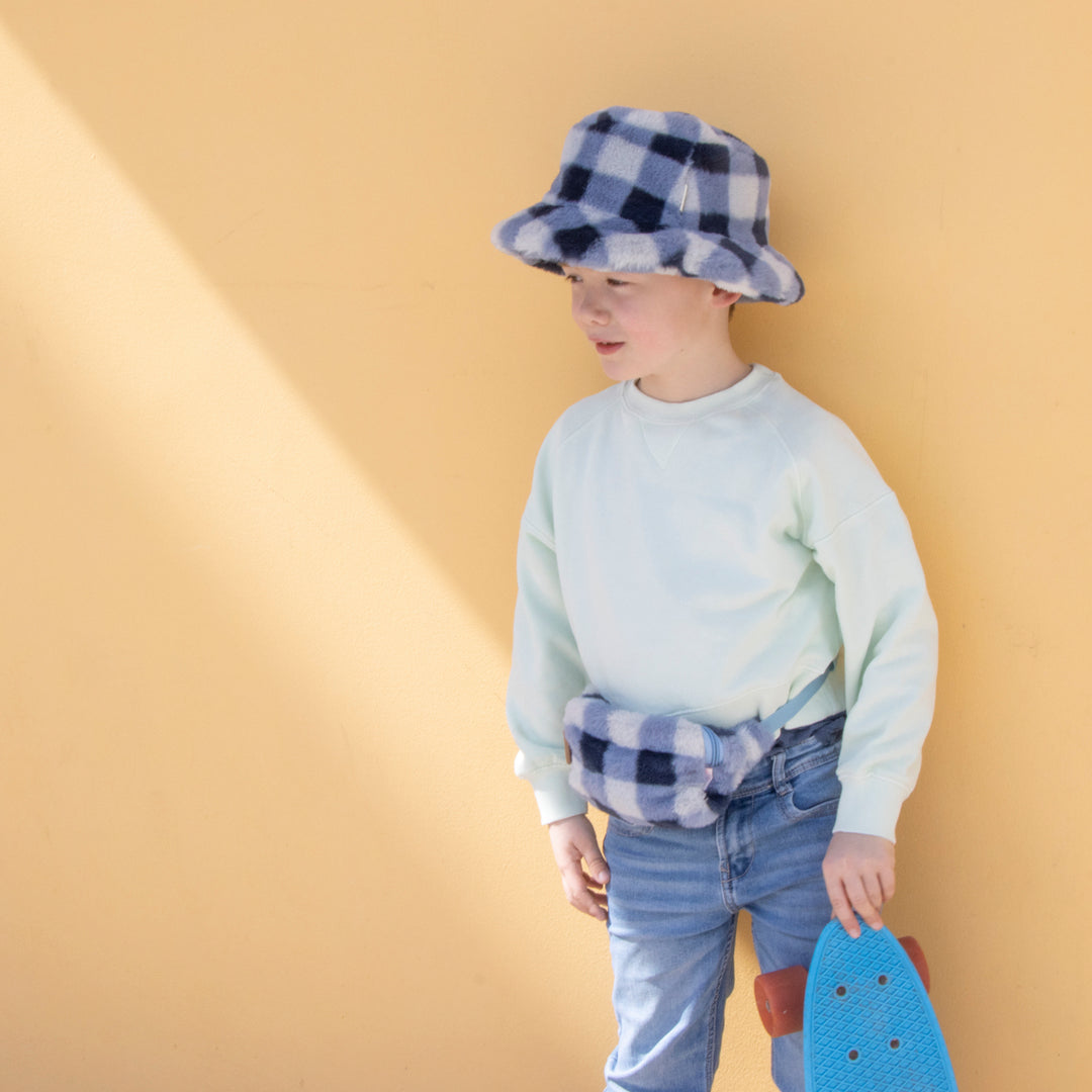 Our super soft bucket hat is designed in the cosiest faux fur and is fleece lined for extra comfort and warmth. In a wearable tonal check pattern, its available in size 3-6 years.