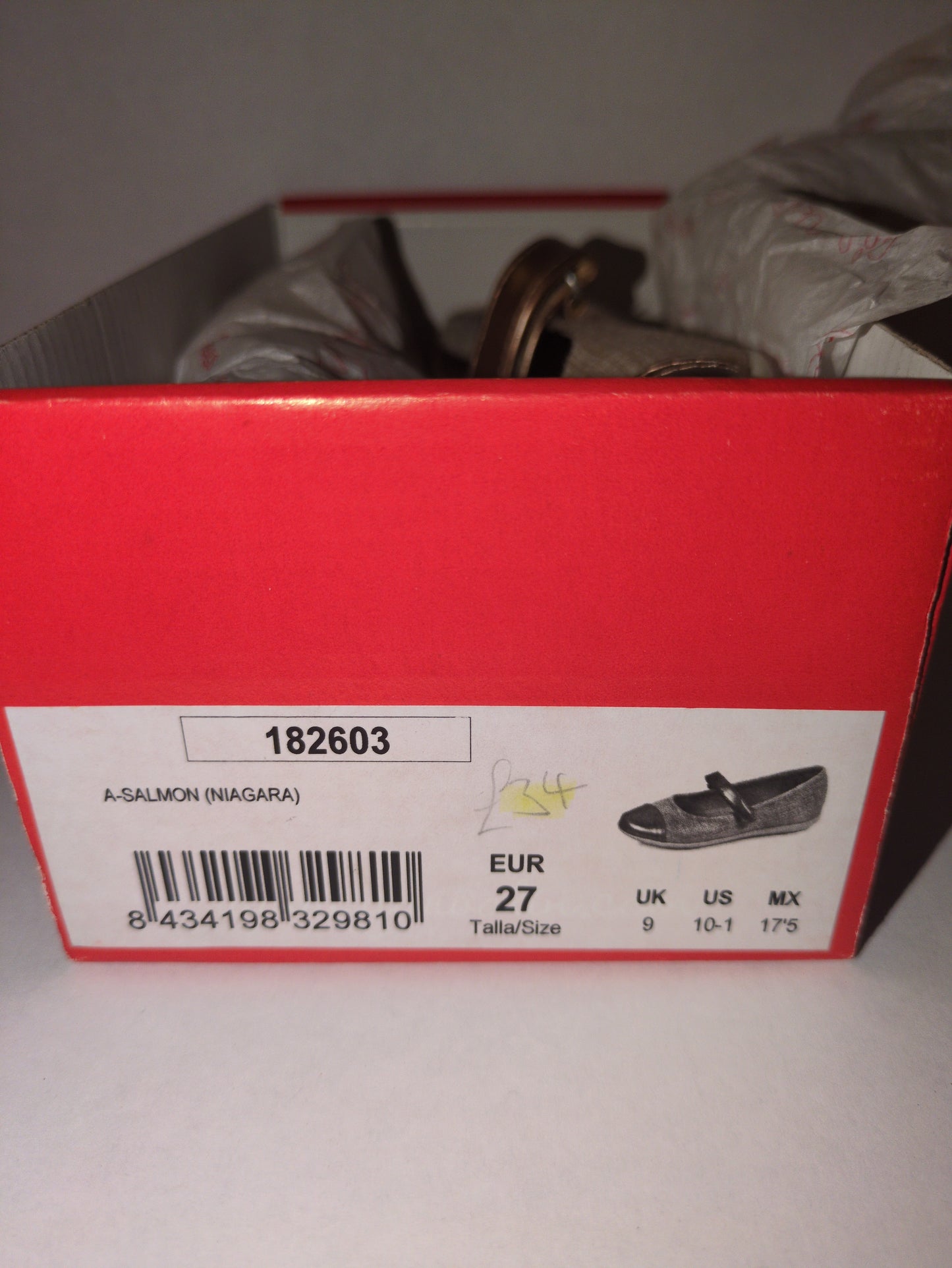 Brand new in box, these stylish shoes are perfect for little feet! Please note that they fit small and are not suitable for wide feet. Originally priced at £34, these shoes offer both comfort and style in a beautiful gold finish.