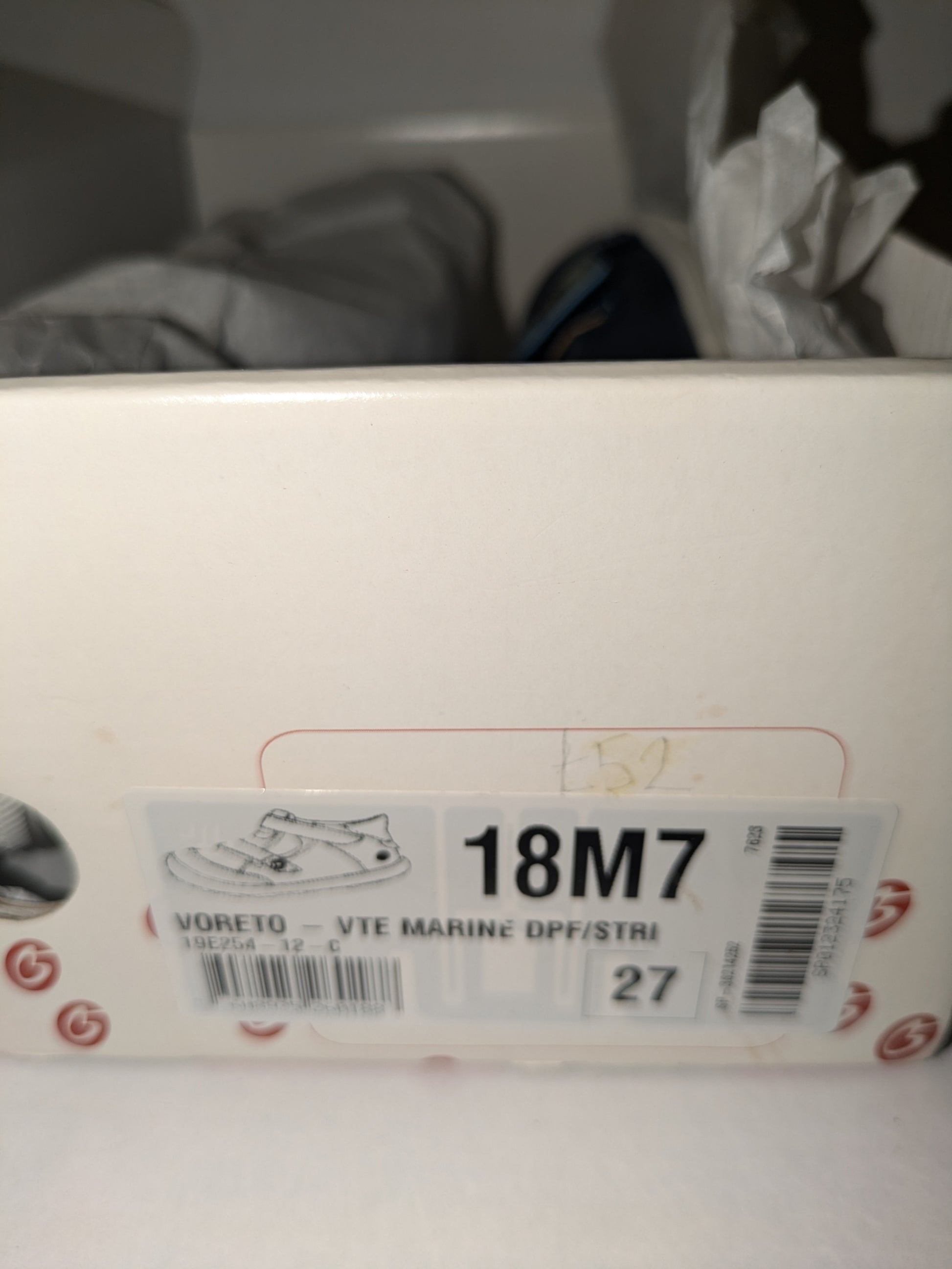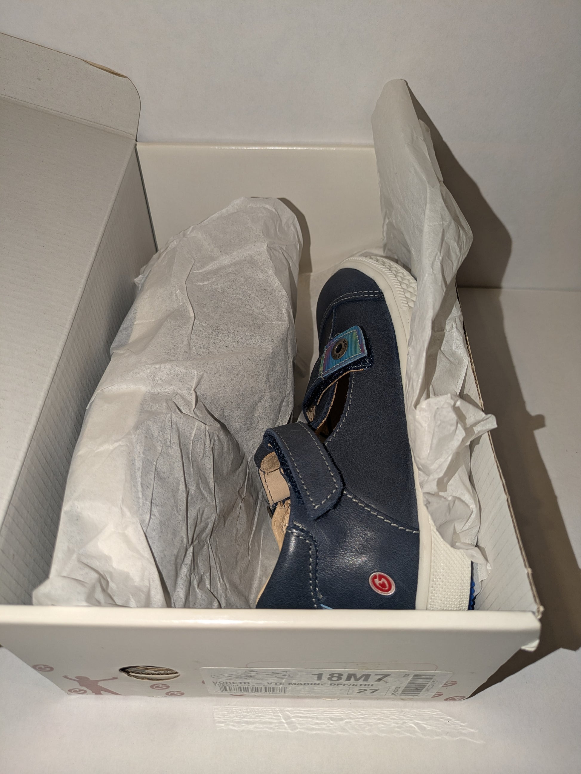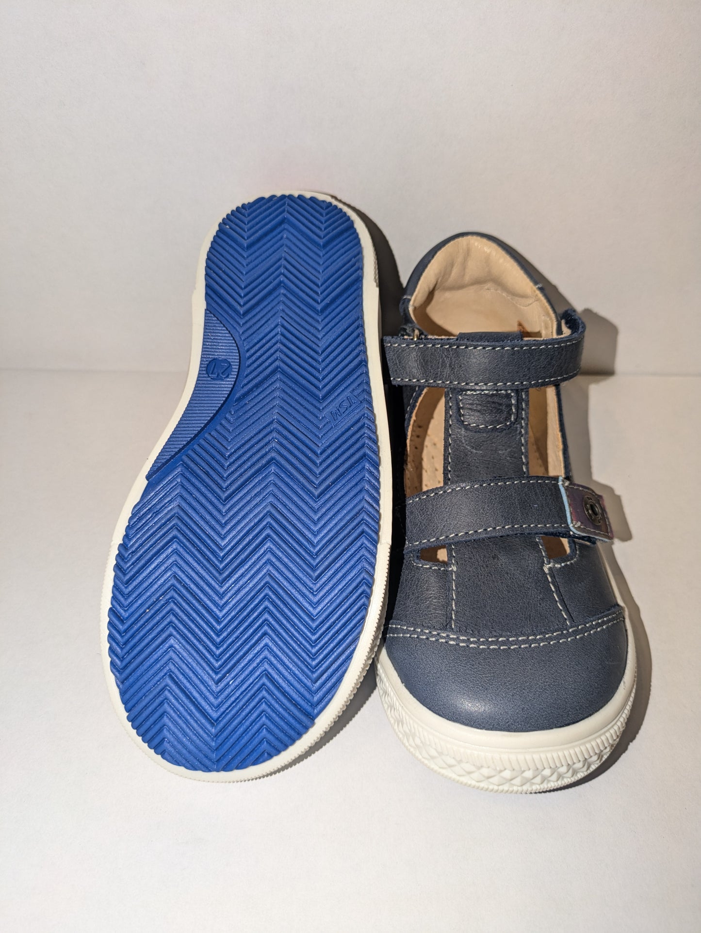 Brand new in box, these summer shoes are perfect for little feet! Featuring a velcro ankle fastening and an over-the-instep velcro strap, along with a high back for added support. The navy colourway makes these shoes both stylish and comfortable. Please note that they fit small.
