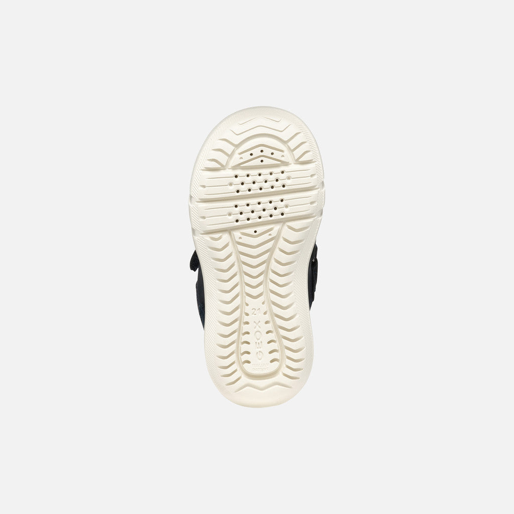 Geox Hyroo is a boys mid top trainer with an outdoor-appropriate waterproof design in navy with red accents, this version of Hyroo has a velcro fastening and a comfortable insulated upper made from nubuck and nylon. It is both protective and breathable, making it an ideal solution for open-air activities, even in the pouring rain.