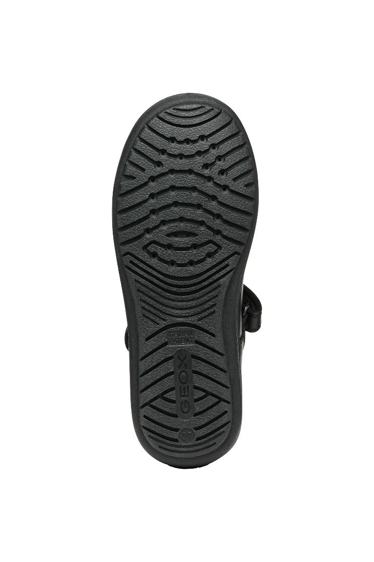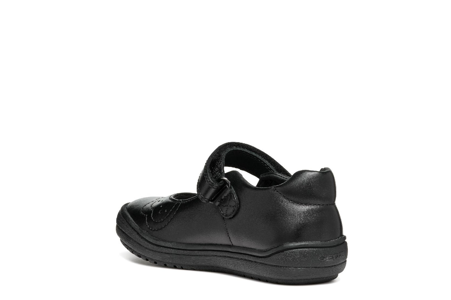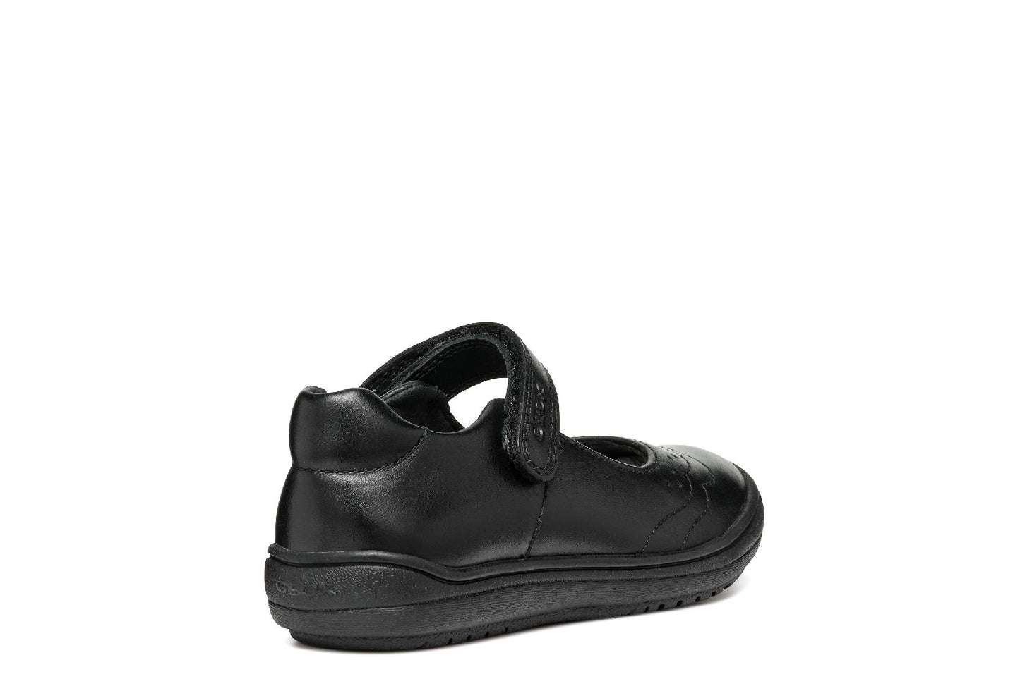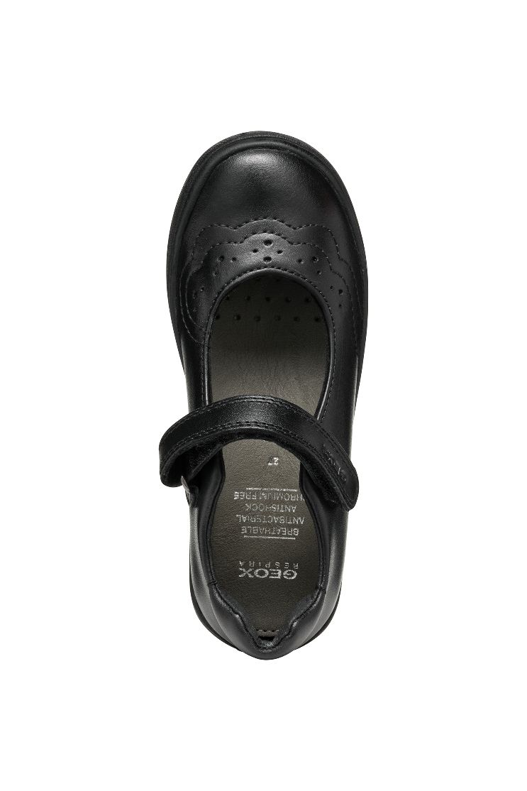 Geox Hadriel, a Mary-Jane style girls school shoe in black leather.