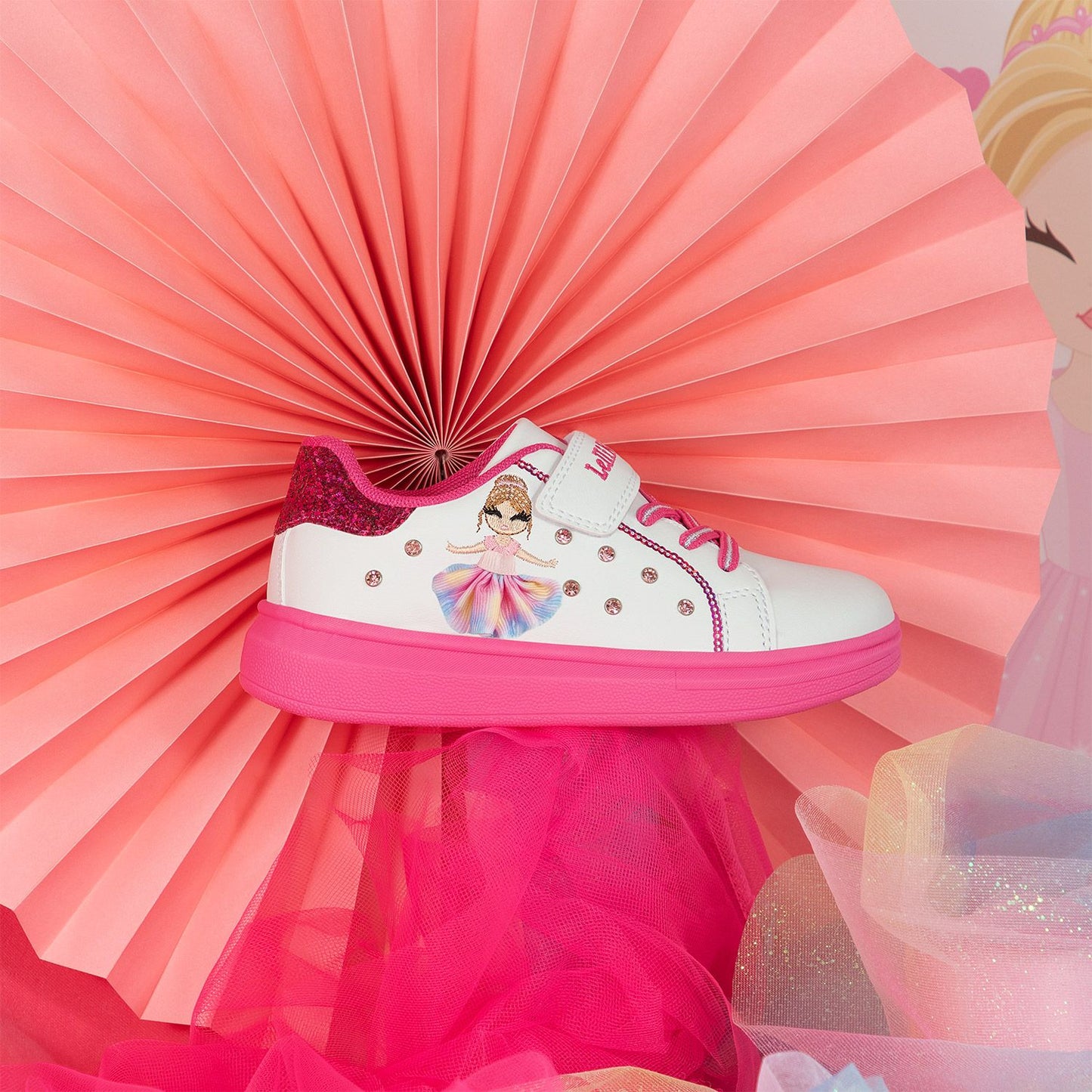 Lelli Kelly | LK4826 Mille Stelle | Girls Trainer | White/Fuchsia