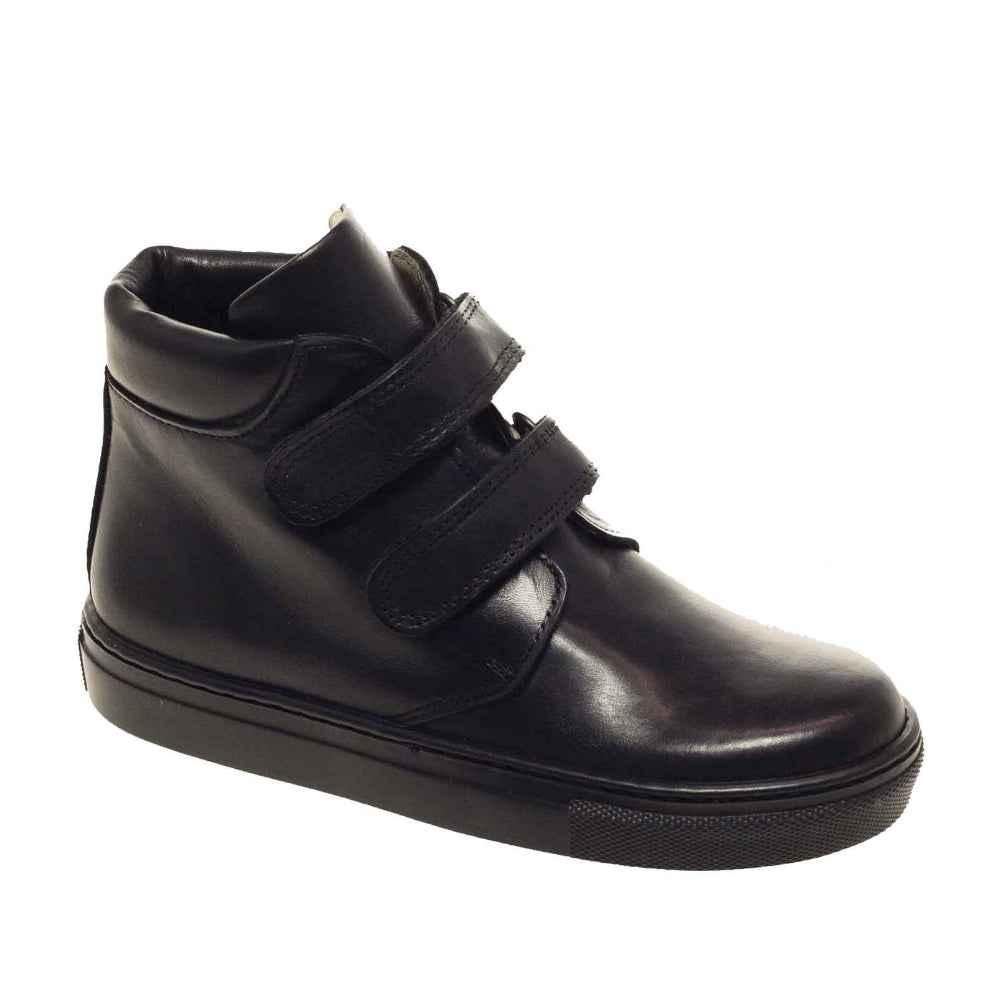 Petasil | Emerson | Boys Velcro School Boot | Black Leather