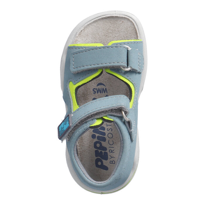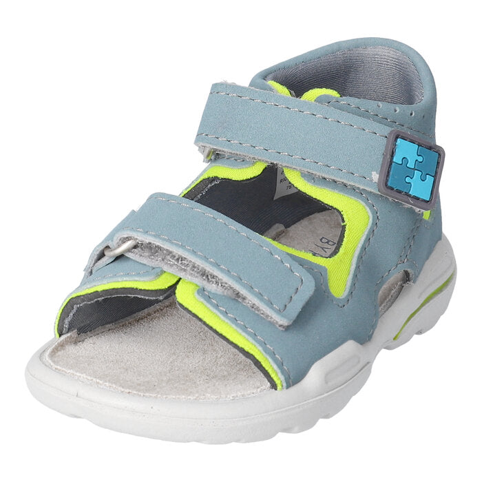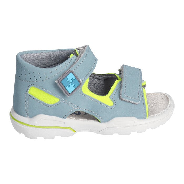 Ricosta Manto a boys open toe sandal in arctic blue with luminous elasticated trim and jigsaw motif on the strap