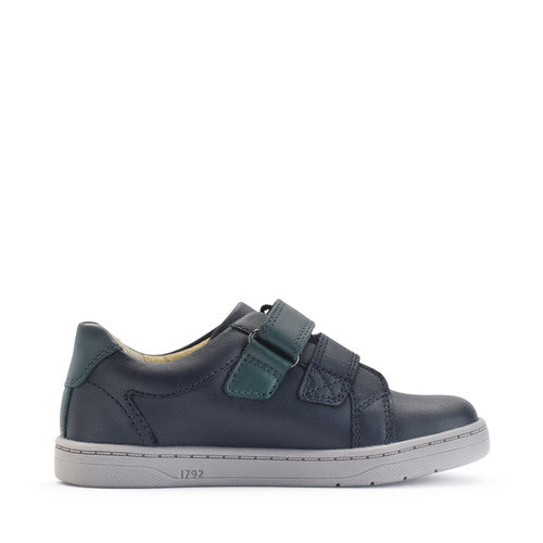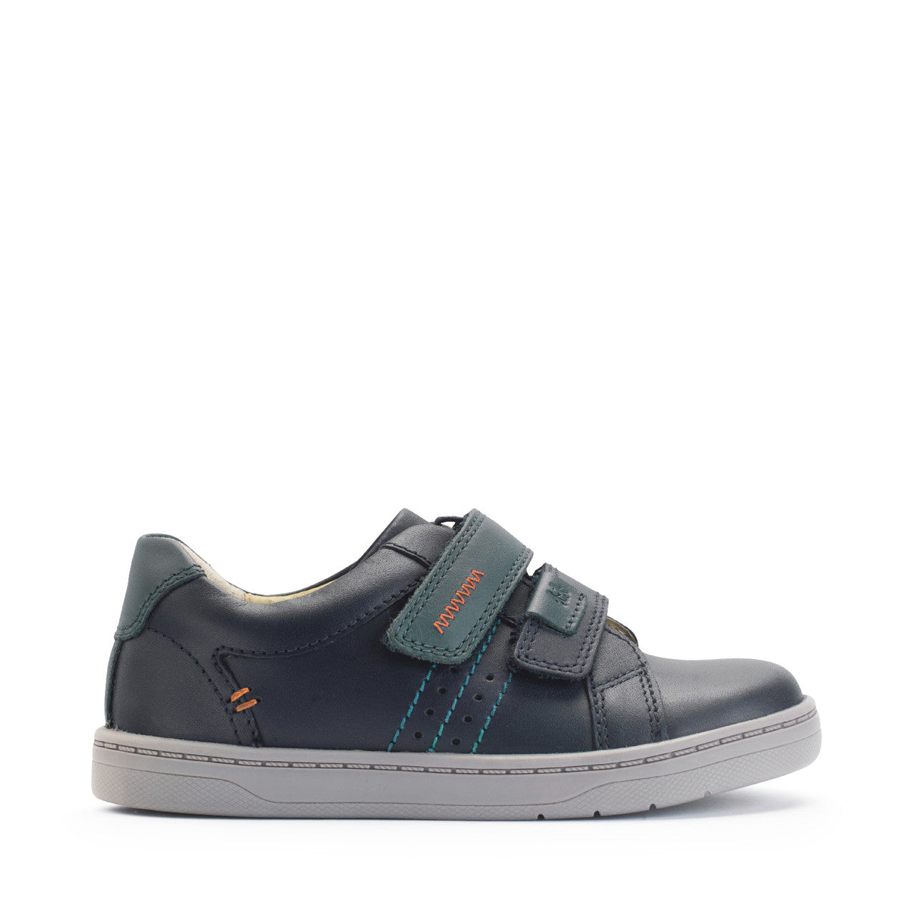 Start-rite Explore a casual boys shoe in navy leather with accents of teal and orange. Made with a soft leather upper, padded ankle supports and breathable textile/leather linings to ensure little feet get the very best in round-the-clock comfort. A custom fit is assured with the two adjustable velcro fastenings and removable footbed. Light and flexible, these versatile shoes are great for pre-school activities and feature the Start-rite ‘Twins’ tab on the bar.