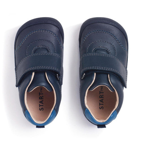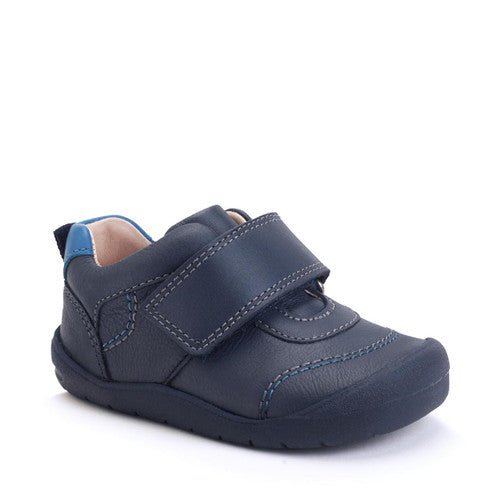 Start-Rite Summit, boys first shoe in soft navy leather with single velcro fastening for a secure adjustable fit. Padded ankles and cushioned insoles for superior comfort. On a flexible lightweight sole for uninhibited movement with heel and toe bumpers for protection.